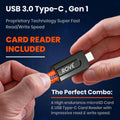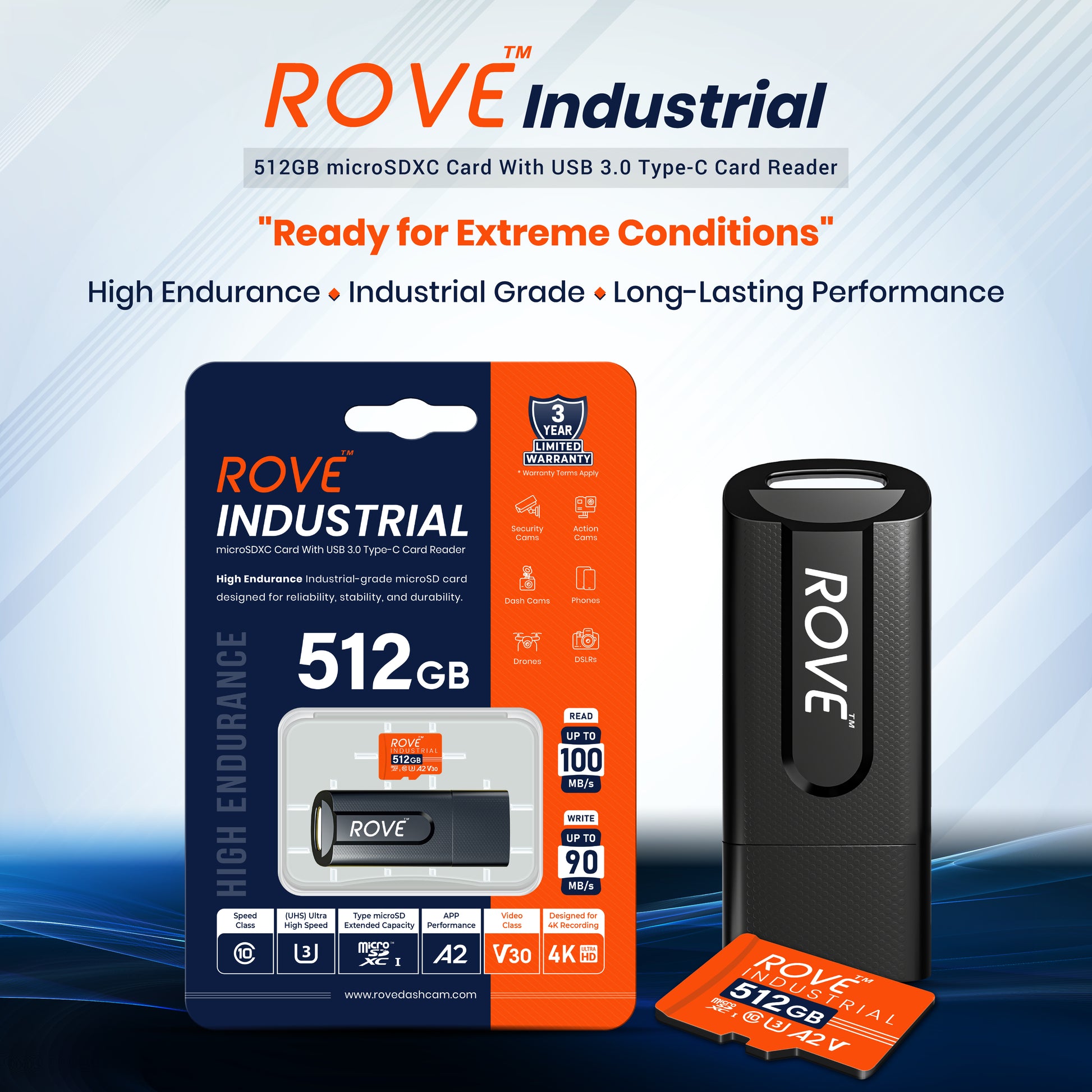 ROVE Industrial microSDXC card with USB 3.0 gen-1 type-C high-speed card reader offers you stunning experience of its impressive read and write speed with super flexibility.
